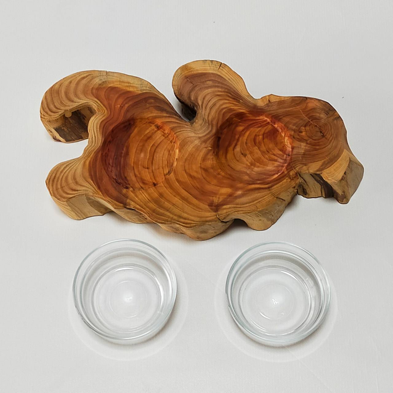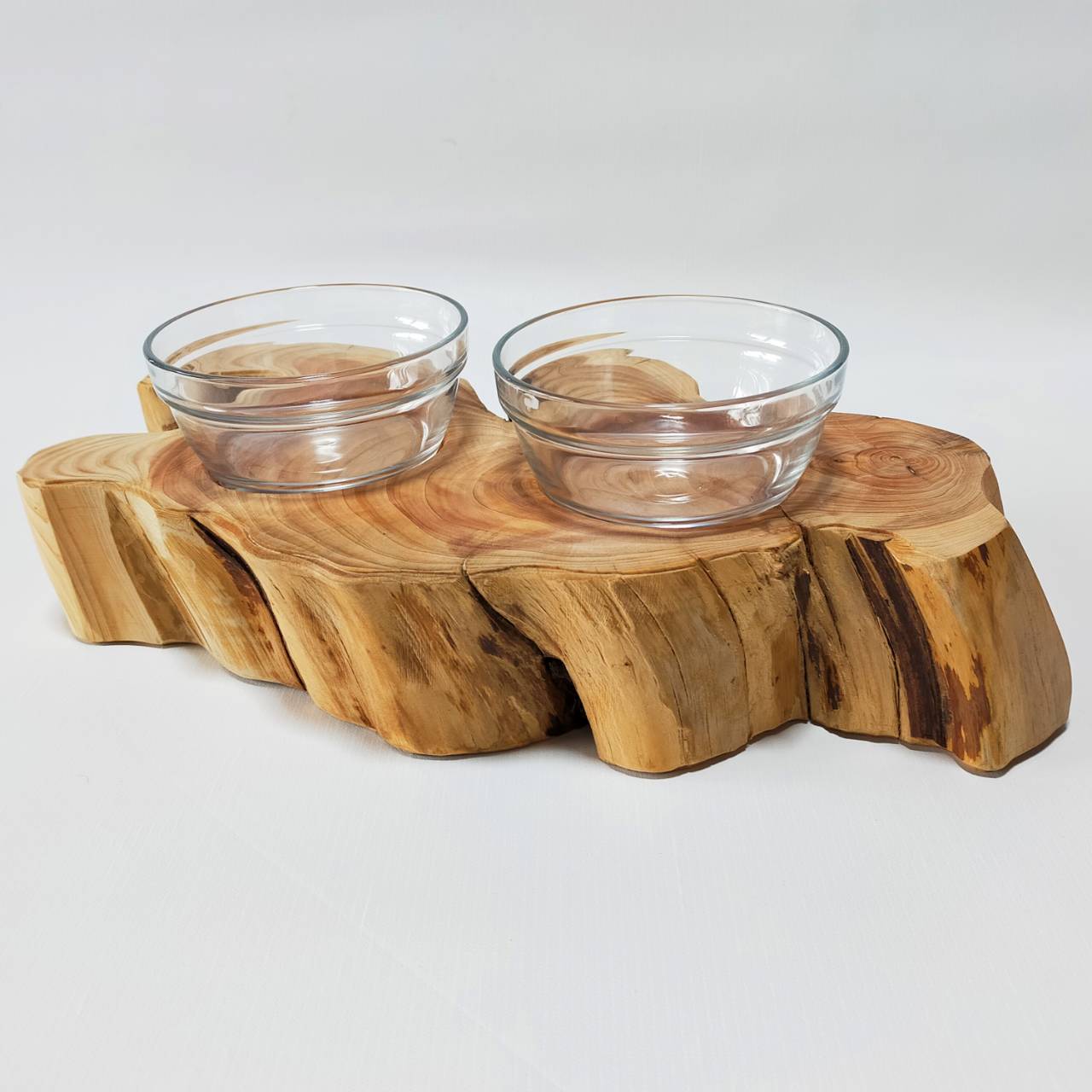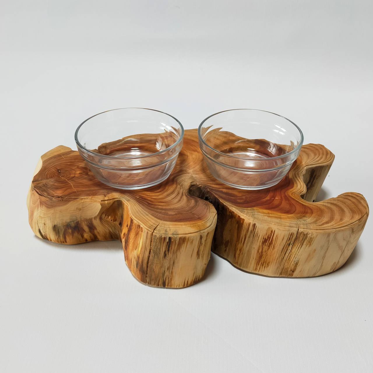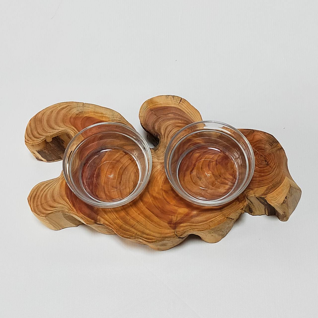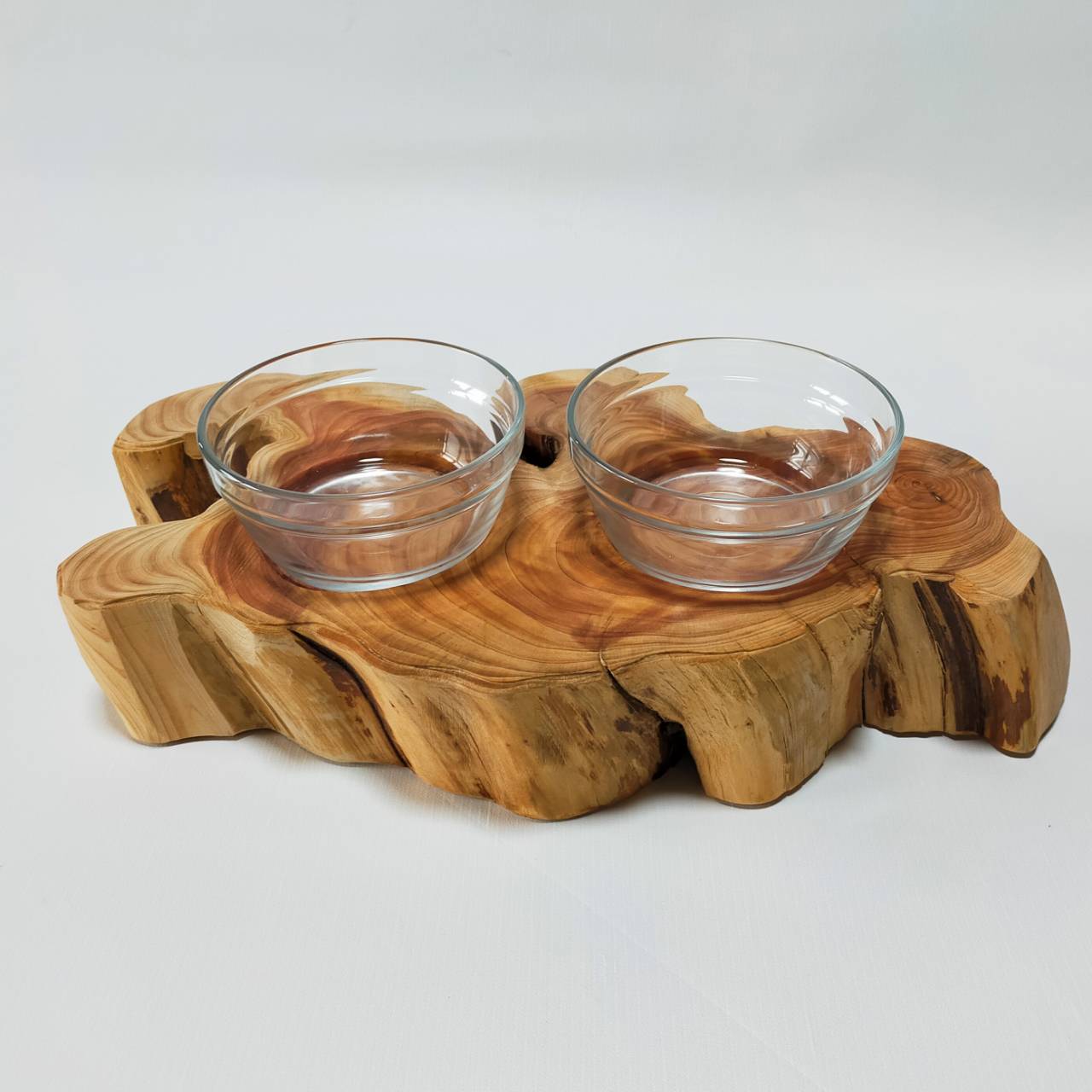 <shop限定>伊吹丸太のペットログボウルダブル 水入れ フードボウル 餌台 エサ入れ
