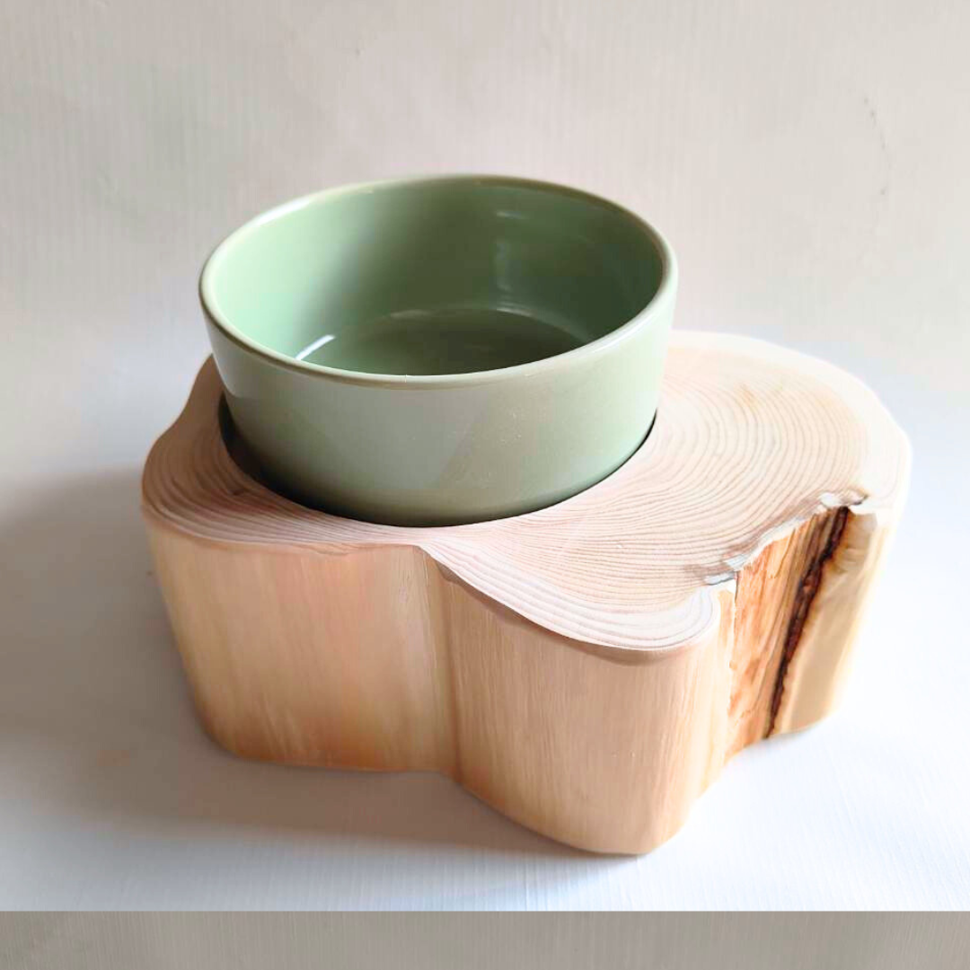 ペット用 自然木高野槙の丸太使用 木製食器スタンド 猫・小型犬用