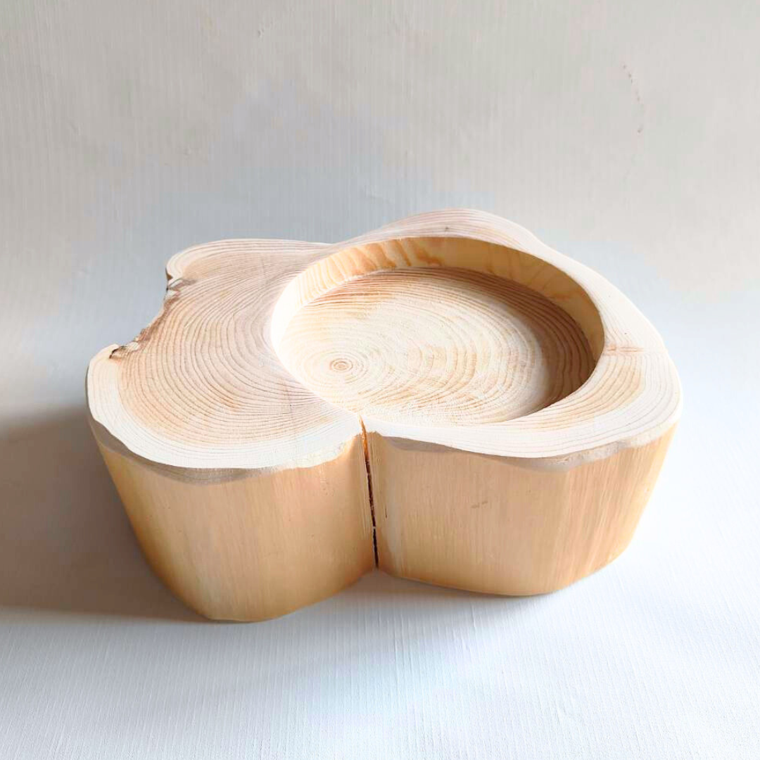 <丸太のみ販売> ②ヘルスウォーターボウルMがピッタリ入る! アウトレット フレッシュ高野槙のログボウル ごはん台 フードボウル 餌台 エサ入れ 1個販売