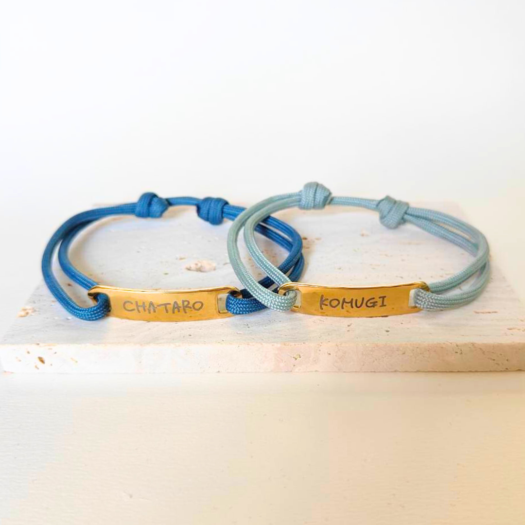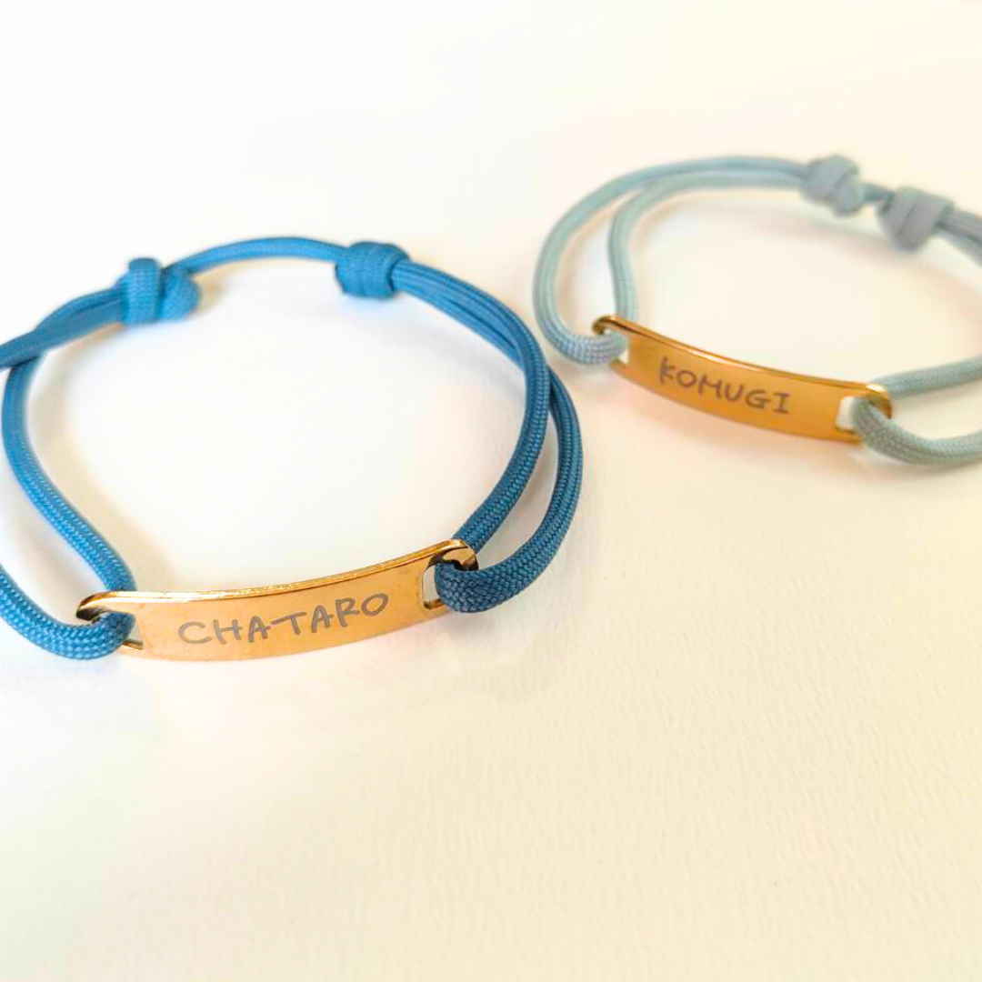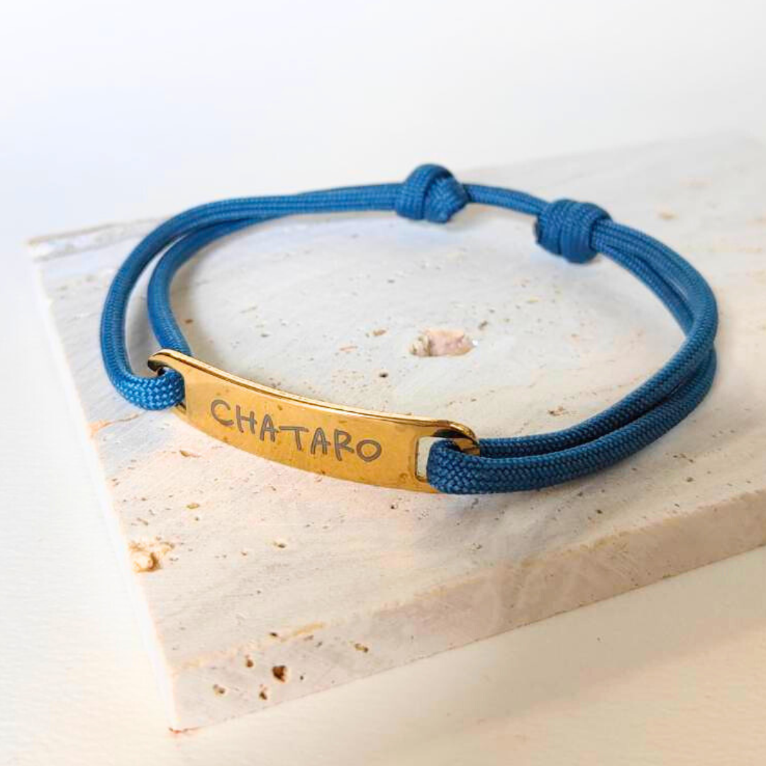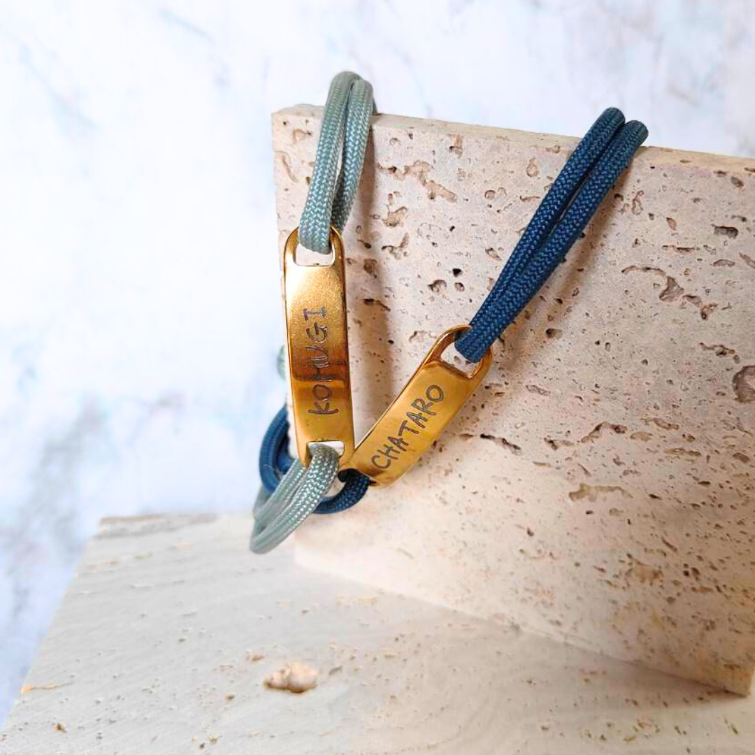 軽くて丈夫なパラコードに、ステンレス製の迷子札をセットしました。