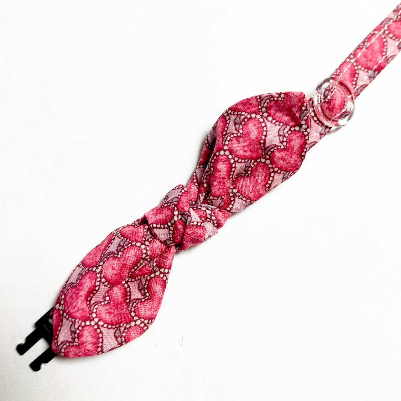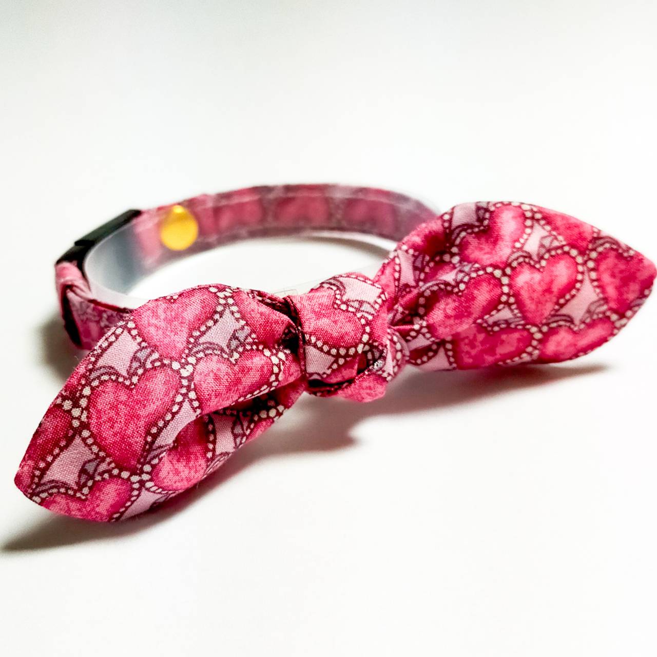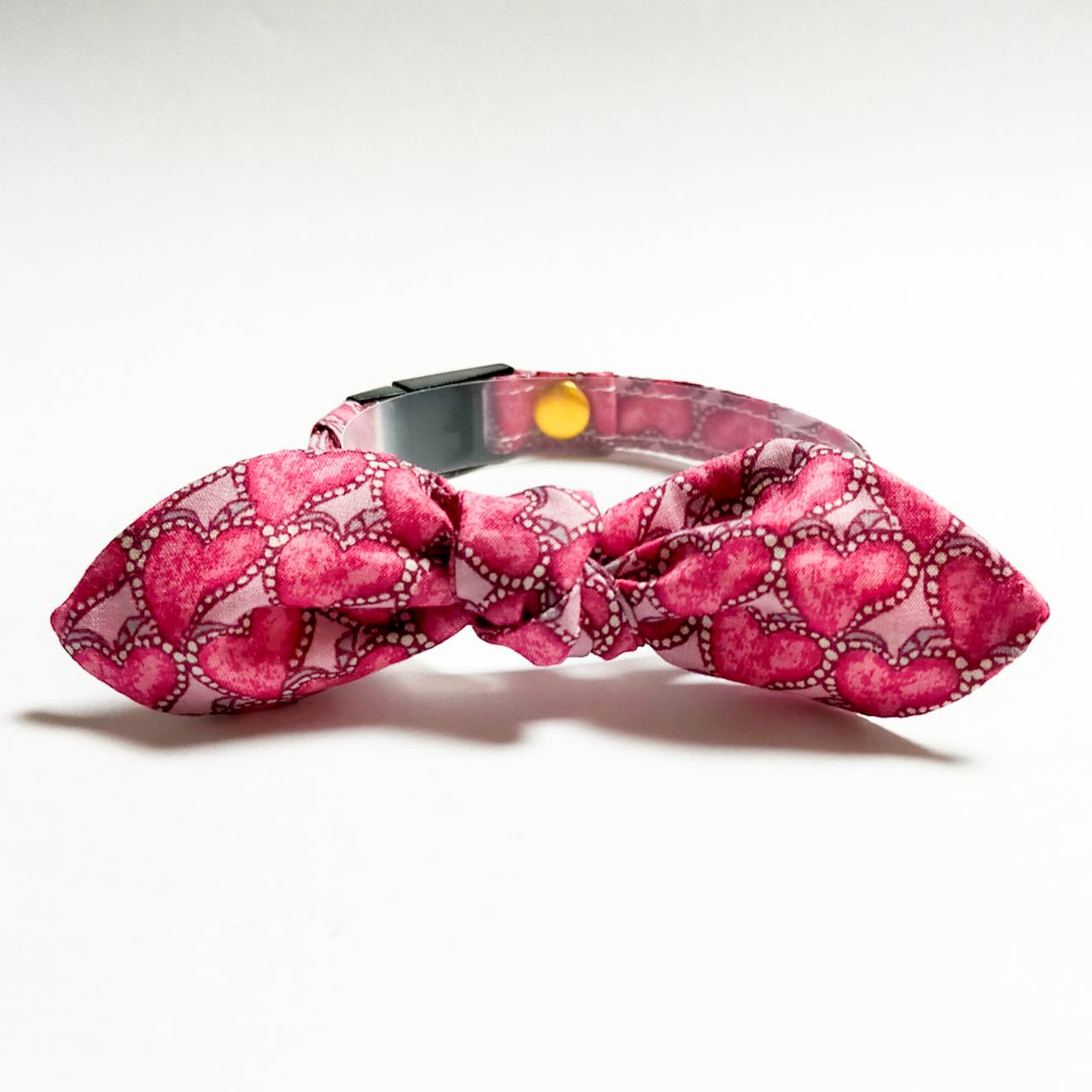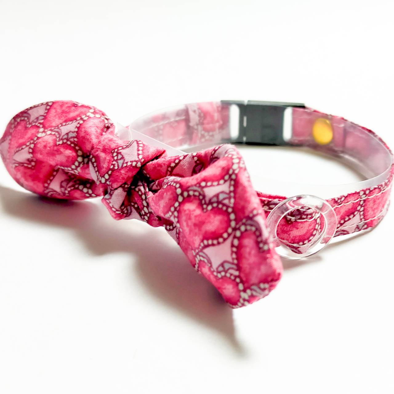 うさ耳リボン ハートキャノピー リバティ生地使用 セーフティバックル 猫 小型犬 首輪 ※オプション迷子札