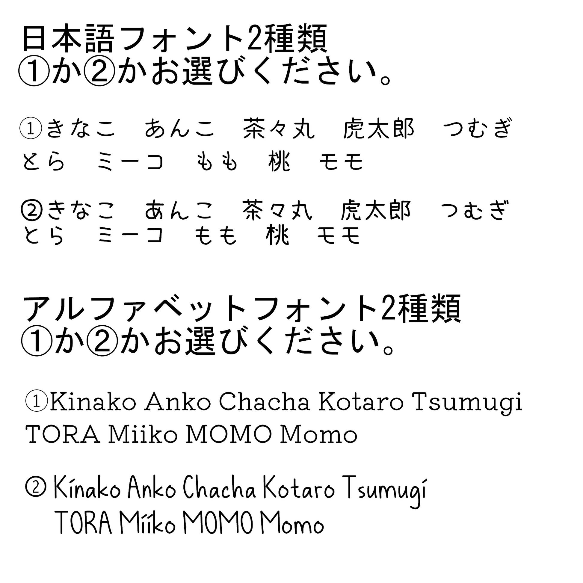 フォントの記載がない場合はこちらで選択して彫刻いたします。