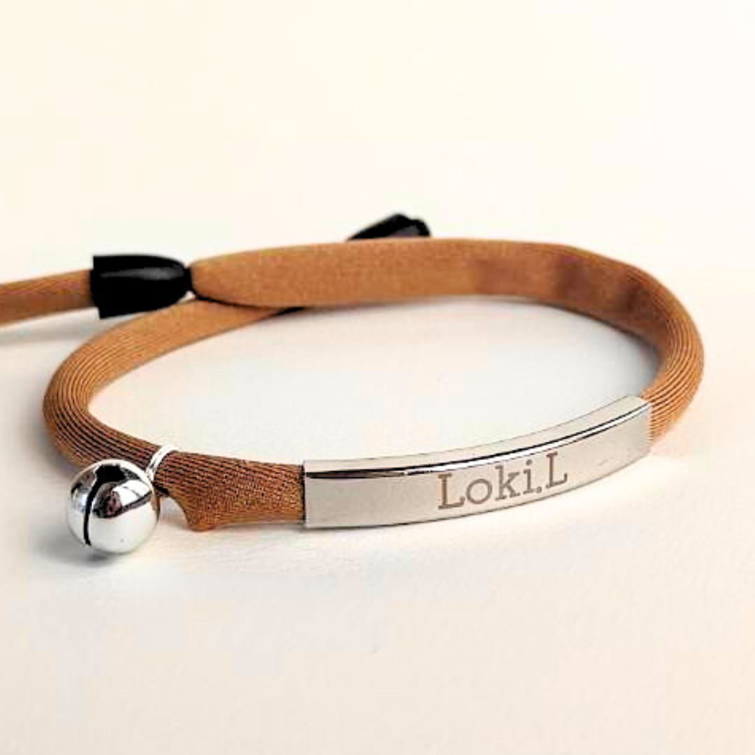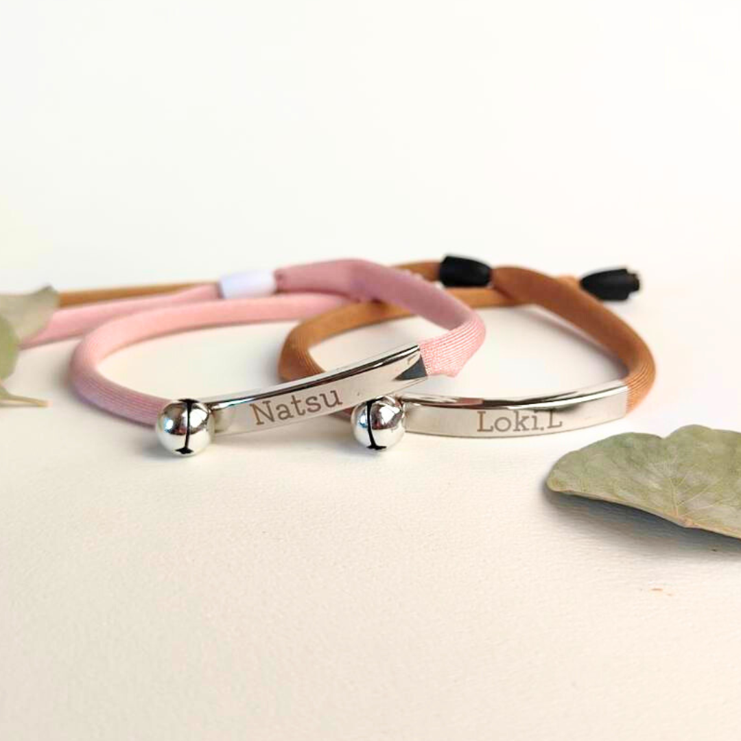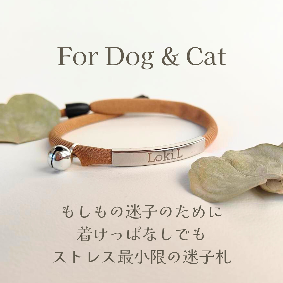 揺れない迷子札(ステンレスバージョン) ストレス最小限 おハゲ防止 わずか4g リニューアル紐 やわらか紐首輪 軽い・やわらか紐・安全バックル・迷子札付き